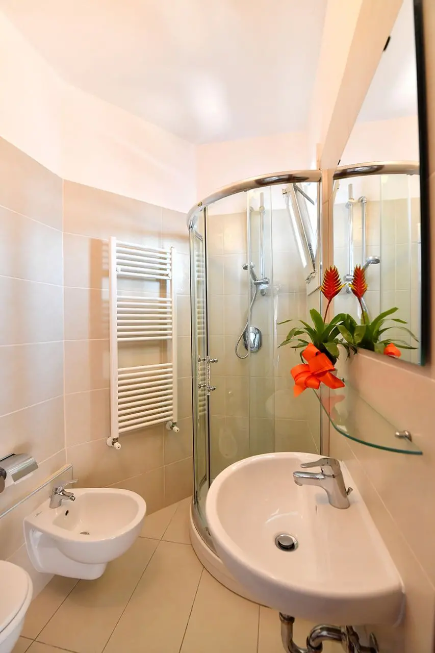 Nella vostra camera troverete box doccia in cristallo, wi-fi gratuito, cassaforte digitale, aria condizionata o riscaldamento, TV da 32 pollici.