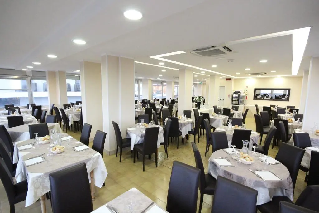 Il pranzo e la cena sono serviti al tavolo con scelta giornaliera di carne e pesce, piatti della tradizione romagnola e specialità locali.